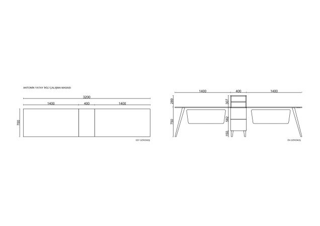 Çekmeceli Etejerli Kablo Kanallı Ara Bölücülü Ön Perdeli